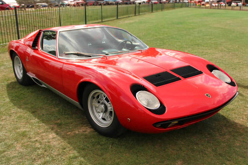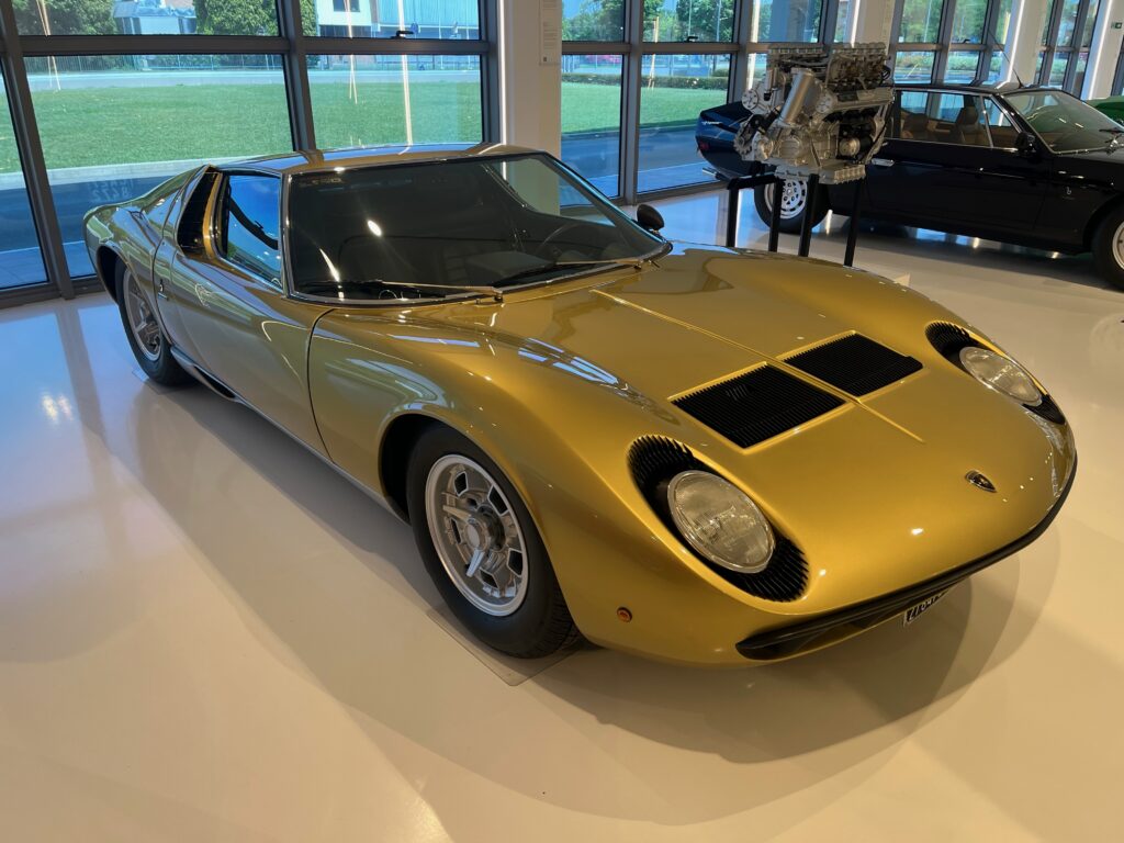The Lamborghini Miura. What a beautiful car. It is 60 years old this year and still turns heads on a rare sighting. Arguably the first high performance sports car with a rear wheel drive, rear mid-engine layout that hit the road in 1966. Its heart was a 3.9 litre V12 which made it the fastest production car in the world that year. The two door Bertone styled coupe was badged with the Lamborghini fighting bull emblem that became Lamborghini’s badge.